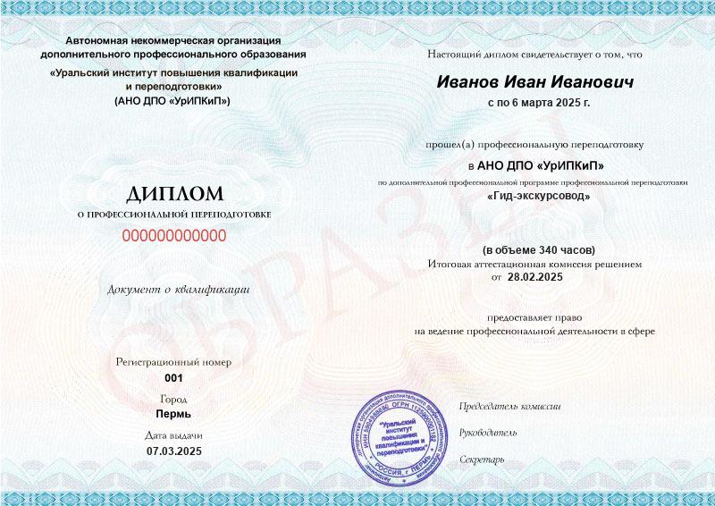 - Образец диплома о профессиональной переподготовке.
